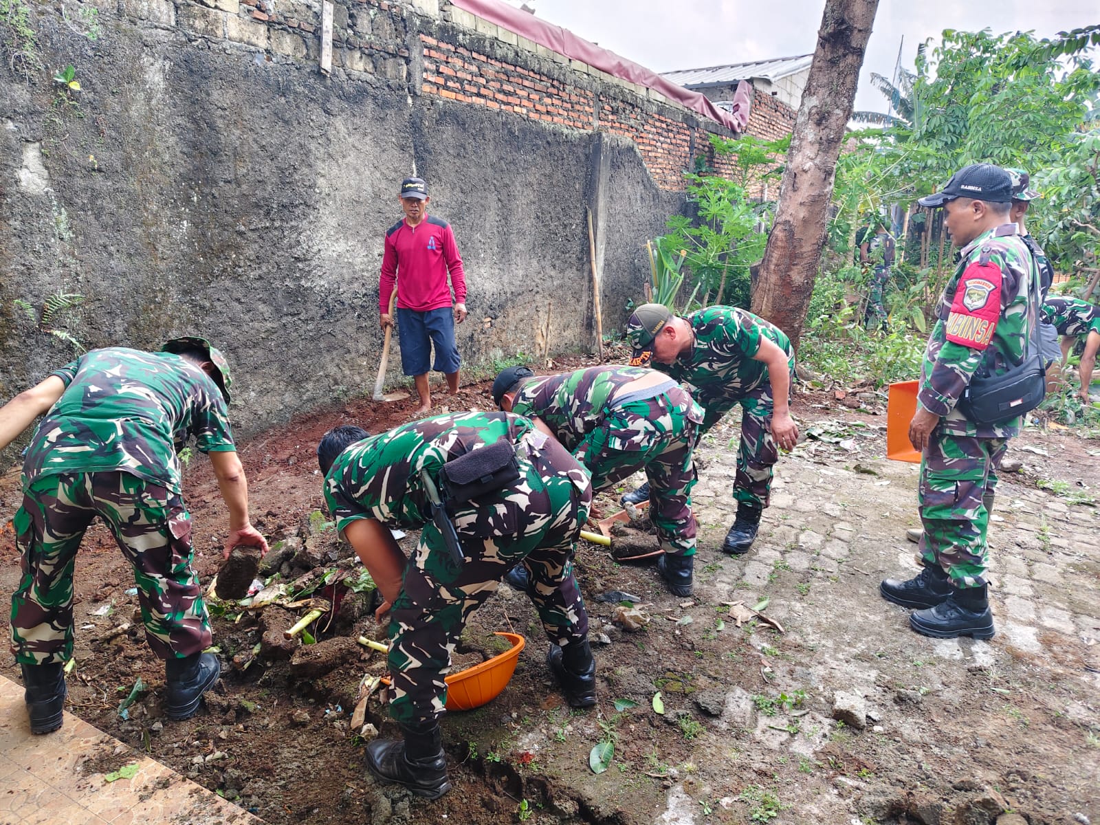 Awali Rehab Panti, Korem 051 Bersihkan Lahan untuk Pembangunan Kamar Mandi di Sawangan Depok