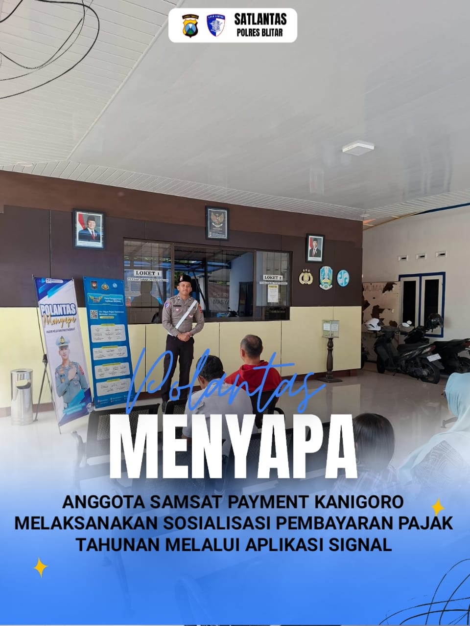 KABUPATEN BLITAR, Derapdetik.com – Briptu Yansen anggota Regident Satlantas Polres Kabupaten Blitar melaksanakan sosialisasi tentang pembayaran pajak tahunan melalui aplikasi Signal.