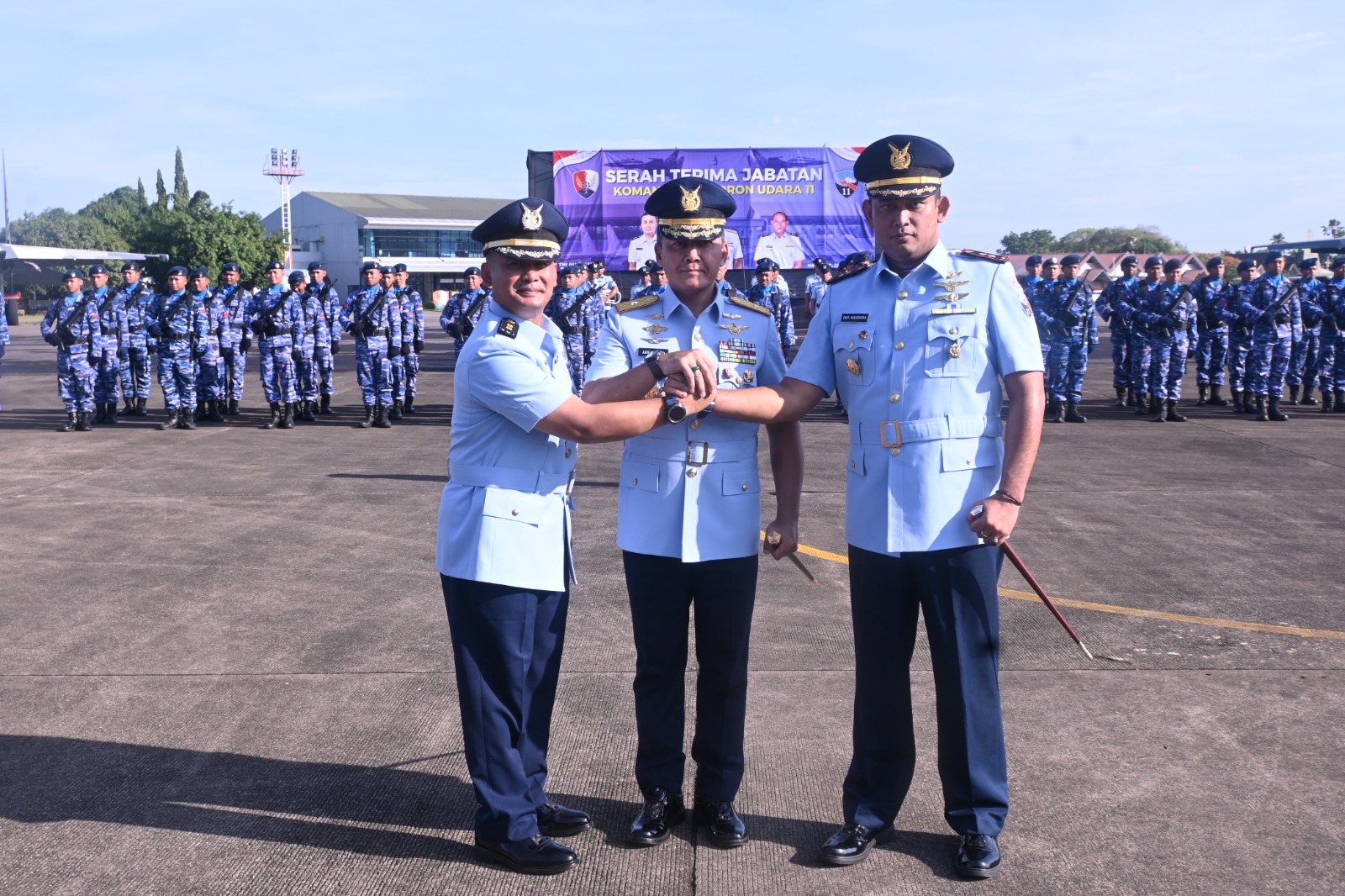 MAKASSAR, Derapdetik.com – Tongkat kepemimpinan Komandan Skadron Udara 11, diserahterimakan dari Letkol Pnb Andry “Stellar” Libarsyah Agung N., M.M.S. kepada Letkol Pnb Dika “Kingkong” Mahendra Puji Kusuma, dipimpin langsung oleh Komandan Lanud Sultan Hasanuddin, Marsekal Pertama TNI Arifaini Nur Dwiyanto, M.Han., dalam upacara serah terima jabatan yang berlangsung di Apron Skadron Udara 11 Lanud Sultan Hasanuddin, Makassar, Kamis (23/10/2025).