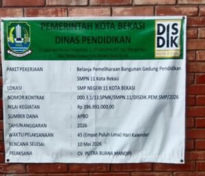 Namun sangat disayangkan ketidakpatuhan pekerja proyek sekolah terhadap standar K3 (Keselamatan dan Kesehatan Kerja), seperti mengabaikan APD (Alat Pelindung Diri) masih terlihat di SMPN 11 Kota Bekasi, pada Selasa (28/4/2026).