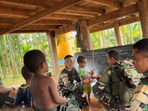 BOVEN DIGOEL, Derapdetik.com – Satgas Pamtas Yonif 126/Kala Cakti melaksanakan program pengajaran dasar baca, tulis, dan hitung (Calistung) bagi anak-anak di Kampung Wametkapa guna mempermudah akses pendidikan dasar sekaligus program pemerataan pendidikan di wilayah perbatasan, Kamis (4/9/2025).